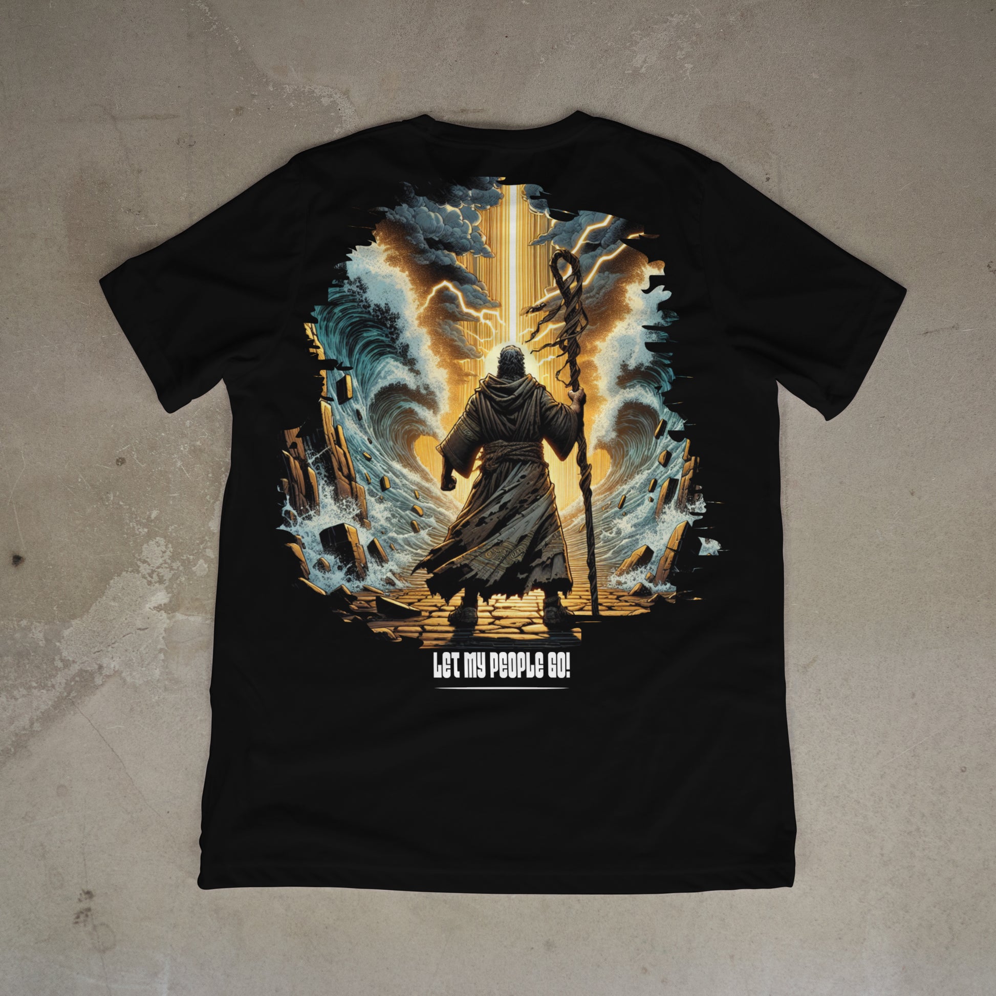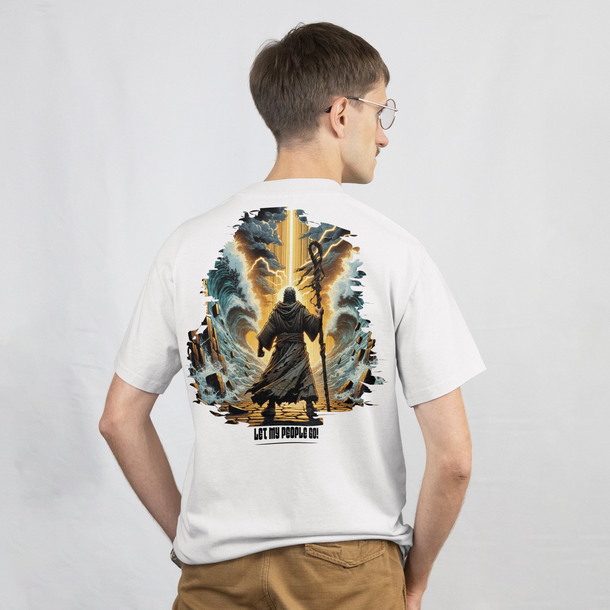 A "Let My People Go" é uma oversized com estampa impactante inspirada na icônica travessia do Mar Vermelho. Representando coragem, fé e liderança, essa arte mostra Moisés abrindo caminho para a libertação — um verdadeiro símbolo de resistência e propósito.