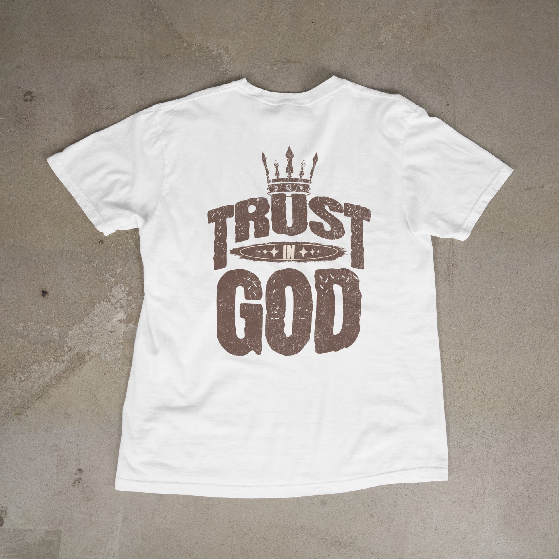 A Camiseta Trust in God foi criada para quem acredita que confiança em Deus é a verdadeira coroa da vida. Sua estampa exclusiva nas costas carrega a frase poderosa “TRUST IN GOD”, acompanhada de uma coroa imponente que simboliza vitória, autoridade espiritual e a certeza de que quem confia no Senhor jamais será abalado.